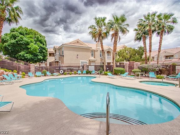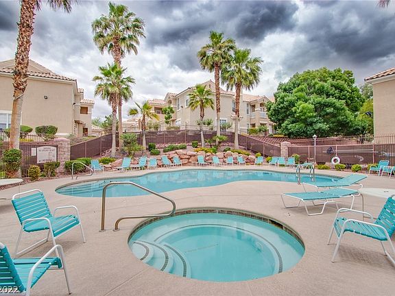 This beautiful 2 bedroom, 2 full bathroom condo with attached 1 car garage has a direct entry into the unit. Mahogany color wood laminate in Living/Dining/kitchen. White sparkling quartz counter top in kitchen. Gated community with Pool/Spa and gym. Convenient access to highway- 215, Costco, LVAC, major chain restaurants and shopping centers. No rental restrictions, rental market $1600/month or a perfect vacation home nest in a quiet community w/resort style living. Gorgeous and move in ready !!