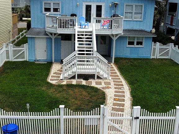 Monthly or Weekly Rental available NOV-MAR. Located in beautiful Cherry Grove, a Tripadvisor Top 25 US Beach, introducing What If Beach House Lower Level Apartment! The home's top floor is owner occupied. The cozy, lower level guest apartment features a convenient, off-street parking space (or two compact cars can park tandem) & private entrance. With two bedrooms, two full baths, living/dining area, & kitchen with laundry, this space is perfect for couples or a small family. Walk 2 minutes to the beach or enjoy a swim in our private pool! (Costs extra to heat)