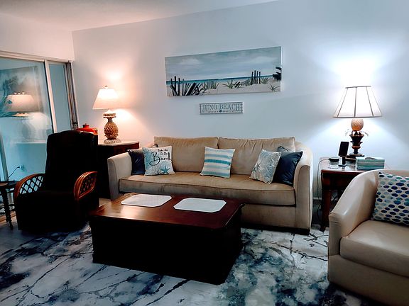 Beach living at its finest! Just a short walk to the beach, this amazing 2BR/2 BA, 1st floor furnished condo backs up to the exclusive Seminole Golf Club. This remodeled rental is packed with amenities including updated kitchen with granite countertops, plank tile flooring throughout, 86" 4k Smart TV in living room, 55" Smart TV in main bedroom, free 500 Mbps internet, work area with office desk, printer/copier, multi-adustable king size Tempur-pedic bed in main BR (with separate remotes for each side), regular/twin bunk in guest BR, and all the extra touches for renter's use such as beach gear, fishing poles, golf clubs, metal detector for beachcombing, small exercise equipment (dumbbells 3 to 25 lb, bands, yoga mat, bench), and board/card games. Enjoy your assigned parking space, quick access to the adjacent laundry/mailroom, heated pool with outdoor shower, breathtaking views of Pelican Lake, and sitting in the expansive sunroom that faces Seminole GC. Take nature-filled walks or run around the lake path, play basketball or bocce at Kagan Park, head to the beach for sun/swim/surf/fishing, or visit the multitude of local restaurants and attractions such as Loggerhead Park, Juno Dunes, and Juno Beach Pier. Centrally located, you are only minutes from the best golf courses, shopping, and restaurants that Jupiter and Palm Beach Gardens have to offer and only 20 minutes from PBI Airport.