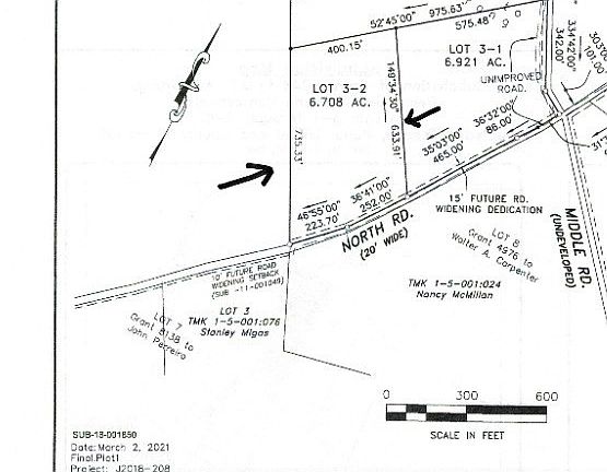 From Pahoa Village Road turn onto Kaohe Homestead Road between Pahoa Elementary and Pahoa High School. Continue approx. 2.5 miles at the "Y" go to the right and follow the gravel road approx. .5 mile and take a sharp left onto North Road. The parcel is on the right side about .5 mile up the road. Signs should be posted, and stakes as seen in the pictures.