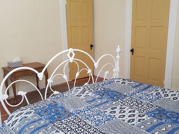 Hardwood floorsAntique iron double bedCozy bedroomSouthern and eastern windowsLarge bedroom