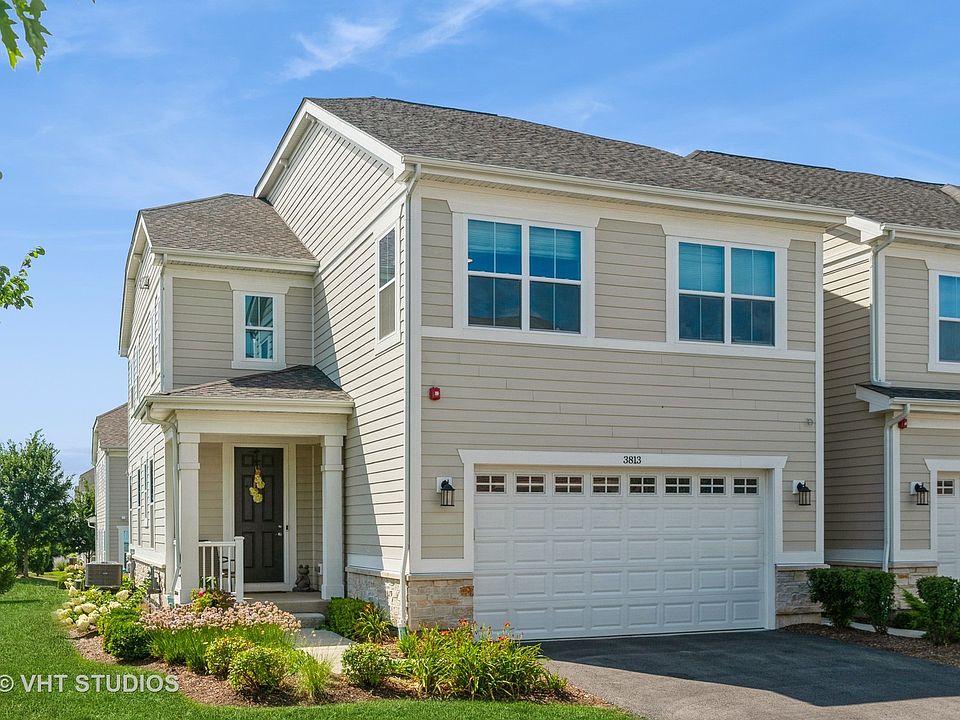 Modern Luxury Meets Comfort - 3BR End-Unit Townhome! Step into this better-than-new 2021-built 2-story townhome and fall in love! With 3 bedrooms, 2.1 baths, and an open, light-filled layout, this home blends style and function flawlessly. Enjoy gleaming hardwood floors, quartz countertops, and white shaker cabinetry paired with premium stainless steel appliances. The oversized gathering island is perfect for entertaining, while the second prep island makes cooking a breeze. As an end unit, natural light pours in from every angle. The deep-pour unfinished basement-already roughed in for a bath-offers incredible potential for a future rec room, office, or guest suite. Meticulously maintained by the original owner, this home is truly move-in ready and waiting for you!