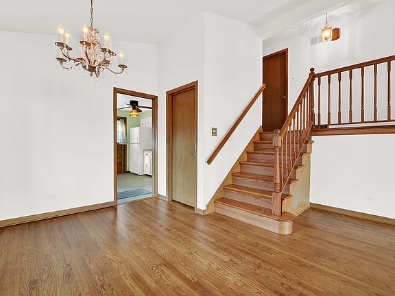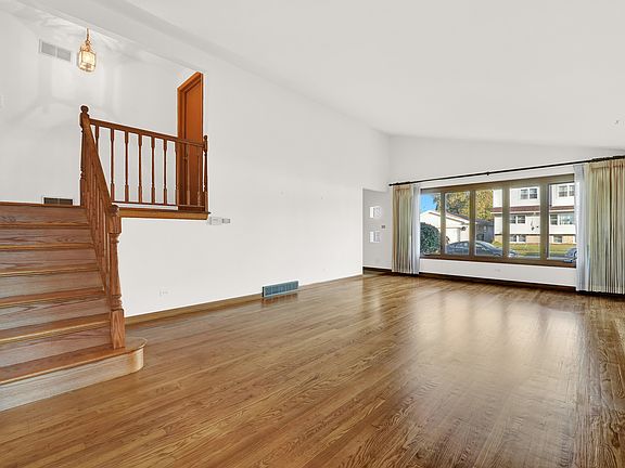 This charming brick Juliet Split single family home sits on a quiet Oak Lawn street. Located near supermarkets, restaurants, approx. fifteen minutes from the I-294 and ten minutes from the 95th Street Longwood Manor Metra Station. You'll be impressed from the moment you walk in, as you notice how spacious the combined living/dining room space feels. This space features a vaulted ceiling, re-finished hardwood floors and staircase to the upper level. Enjoy your morning cup of coffee in the natural light-filled kitchen, including ceramic tile flooring and a double oven. This cozy kitchen is spacious enough for an eat-in setup. Located on the second level are three large bedrooms with re-finished hardwood floors, blinds and spacious closets. Just down the hall you'll find a full bath that includes a built in linen closet and ceramic tile flooring. The lower level offers a spacious family/TV room with vinyl plank flooring throughout. This space also includes a dry bar, second bathroom, laundry room, storage closet and built-in shelving. There is a separate entrance/exit door leading to the back yard. Includes a two car garage with a side driveway. New roof (July 2020), new siding (July 2020), new sump pump (Oct. 2020). Includes stovetop, double oven, microwave, refrigerator, washer, dryer and mini fridge (bar), all are as is.