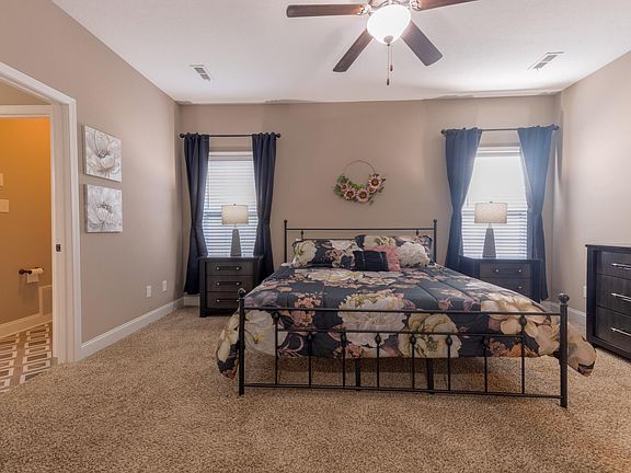 4 bedrooms, 2.5 baths with workspace option. Sleeps up to 8 people. Families and pets welcome. Monthly rent is "all inclusive", and covers: all utilities (water, gas, electric), trash pickup, wifi, lawn mowing service. House is fully-furnished, with a functional kitchen; as well as washer, dryer, and full-size fridge. Master bedroom is downstairs, and has an on-suite bathroom with a large jetted tub, and two walk-in closets. Two car garage, driveway, and plenty of street parking available.