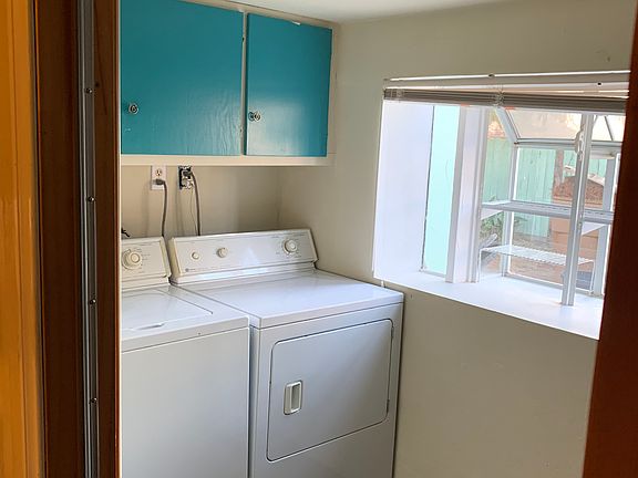 The unit has a private driveway for off street and gated parking. A sweet little yard space with room to garden and enjoy the outdoors and a small storage shed nicely shaded by a large pine tree.