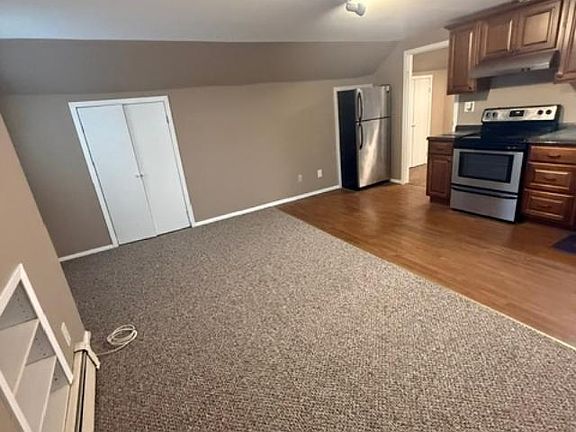 One Bedroom second floor apt, full bath w/ storage closet. Kitchen & living room combo, living Room w/ closet, hallway w/ closet, entry way cedar closet, coat closet, new carpets, freshly painted, new lights, private driveway parking, private yard. No pets. No smoking. Credit check & Income verification. Single Occupant preferred but negotiable to one couple. One month rent & one month security due at lease signing.