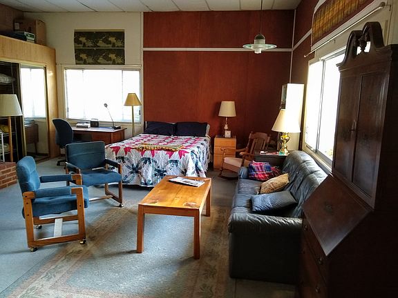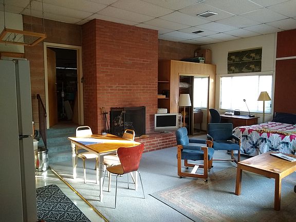 Fully furnished studio apartment looking out on patio and garden. Includes all furniture, kitchen plates, pans, utensils, towels, sheets, blankets, etc. Large closet, gas stove, appliances, fireplace, etc.