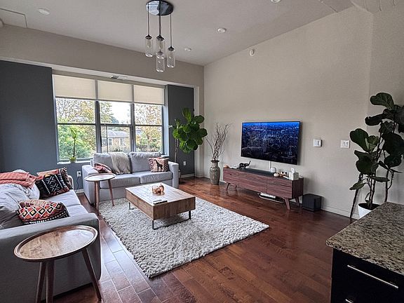 The unit is a massive 1700 sqft, with open loft style condominium w/ soaring high ceilings, large windows, & contemporary kitchen + bathroom in Emeryville. The loft features tasteful vinyl wood flooring throughout and stylish tile on bathroom floors. Kitchen is equipped w/ stainless steel appliances, freestanding gas range/oven, ventilation hood, & granite counter tops. Plus in-unit laundry and fitness center in building.