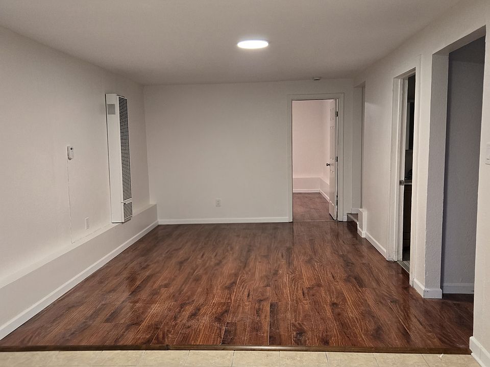 Two bedroom unit of a duplex available for rent with open living room + dining layout.