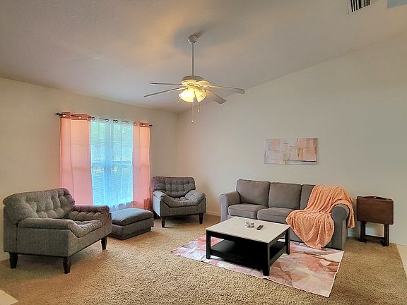 Relax with the whole family or after a long day of work! This property is located just minutes away from local hospitals, Rainbow Springs, and the New Ocala World Equestrian Center.The comfortable space in this home creates a cozy place for business or pleasure for couples, small families, or those traveling for work! Relax in the living room or plan a game night with the family or cook your favorite meal in our fully-equipped kitchen! The master suite includes a comfortable queen-size bed and private bathroom. Just down the hall, you'll find another full bathroom and the second bedroom with a queen-size bed. Also provided is a queen size sleeper couch for additional sleeping spaces. Bring a portable grill so that when you're not sight-seeing or working, you can enjoy the roomy backyard! PARKING - A total of 2 parking spaces in the driveway also allows for convenient access.SMOKING/ANIMALS - The owner stays at this property between guest stays and has critical health issues. Therefore, we remind our guests of the following very important house rules:1. We do not allow smoking/vaping at this property at all.2. No animals are allowed at this property at all for any reason.Due to disabilities, the owner is exempt from having to allow support animals to stay.**Guests are asked to leave if these 2 critical house rules are broken.**If you have any concerns, please feel free to message us.Thank you, and welcome!