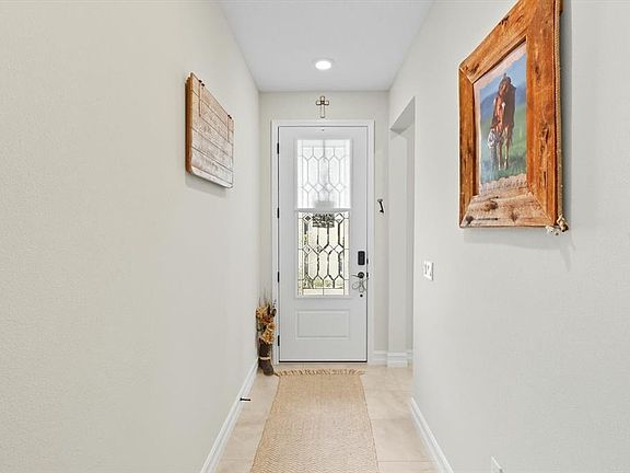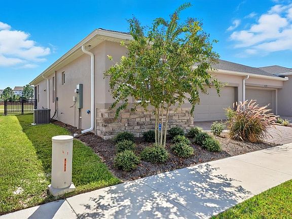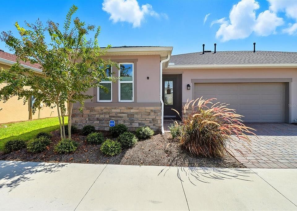 BETTER THAN NEW! LARGE FENCED YARD This 2024 Shea Aria Villa is perfectly positioned in the desirable Ocala Preserve community, which welcomes both 55+ and all age sections. Thoughtfully upgraded, meticulously maintained, and beautifully designed, this home blends comfort, convenience, and lifestyle in one exceptional package. Step through the upgraded obscure glass entry door into a welcoming foyer. To the left, a private guest bedroom and full bath with a tub/shower combination create an inviting quiet retreat from activity in the living space of the villa. Continue down the hall to a versatile den—perfect for an office, fitness room, or hobby space—complete with a spacious closet housing a gas Whirlpool washer and dryer. At the heart of the home, the open-concept kitchen, dining, and living area is both stylish and functional. The kitchen features stainless steel gas appliances, maple cabinetry with dovetail drawers, soft-close hinges, pull-out pans, and gleaming Zanzibar granite countertops. The primary suite is a peaceful retreat with dual sinks, an upgraded tiled shower with glass door, and a custom-designed walk-in closet. Throughout the villa, you’ll find thoughtful finishes such as custom top-down/bottom-up blinds, enhancing light and privacy. A large sliding door opens the living space to a screened lanai, offering serene views of green space and direct access to community walking and biking trails. Prewired for fans and equipped with a gas hookup for your BBQ or firepit, this outdoor space is designed for both relaxation and entertaining. The garage adds even more: sealed driveway pavers, plumbing for a water softener, and a dedicated golf cart outlet. This villa has been smoke-free, pet-free, and exceptionally cared for—offering true move-in readiness. HOA coverage includes exterior painting, schedule power washing, roof, irrigation, lawn care, access to a Tom Lehman–designed golf course and golf center and fishing, catch and release, on a private 7-acre lake. Ocala Preserve Club offers Resort-style living with every convenience at your fingertips. State-of-the-art fitness center & spa locker rooms, Luxury pool and lap pool, full-service spa, Tennis, pickleball, kayaking, and a vibrant calendar of clubs and social activities The community is golf cart–friendly with shopping and dining just outside the gates. Location highlights include: 4 miles to the World Equestrian Center 15 minutes to HITS and Downtown Ocala Quick access to I-75 With no CDD fees (saving thousands annually) and an assumable FHA loan at 5.875%, this home is not only a beautiful retreat but also a smart financial choice. Perfect for full-time living or a seasonal getaway, this better-than-new villa offers the best of Ocala living—move-in ready and waiting for you. All measurements to be verified by buyer.