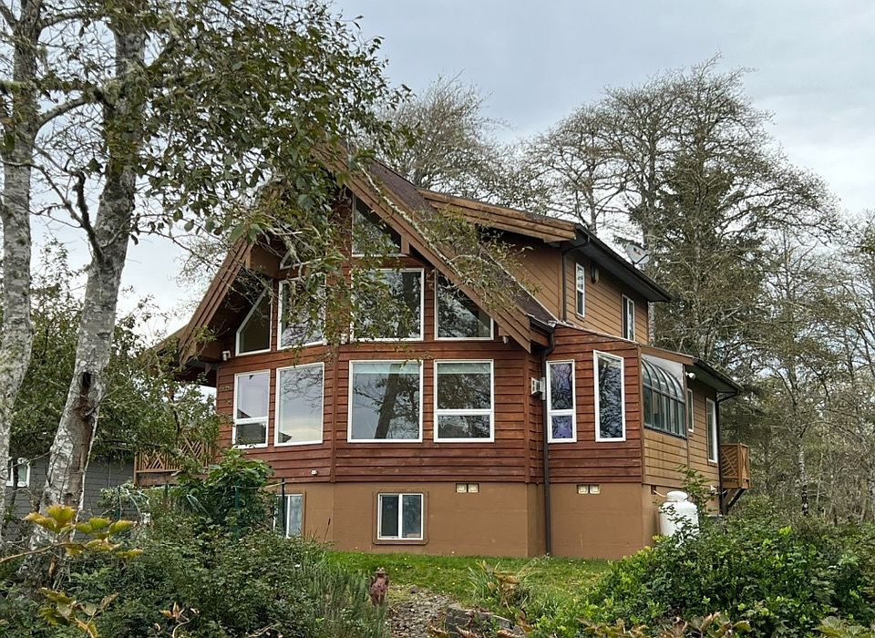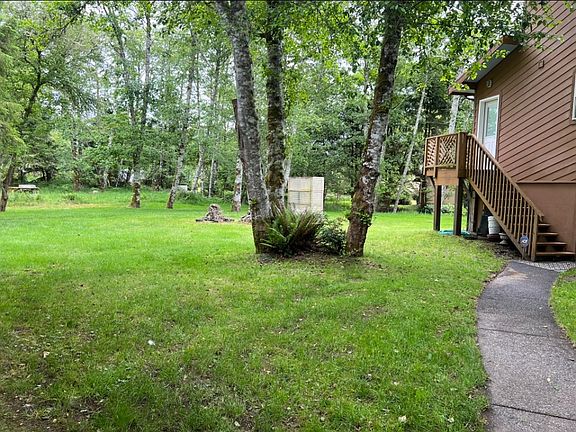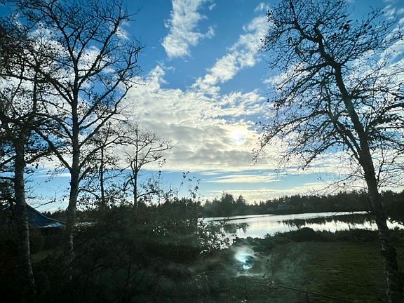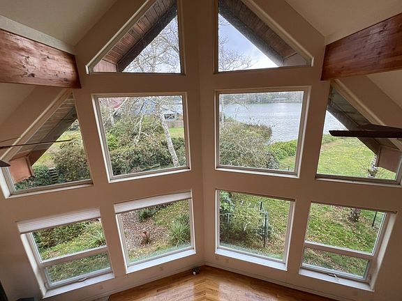 Discover this enchanting retreat just off Duck Lake in Ocean Shores where spectacular views and serene privacy await! Nestled in a quiet, tranquil setting, this unique 2-bedroom, 2-bath home is full of character and natural beauty. The heart of the home is a living room featuring a wall of windows that frame stunning lake views, which can also be enjoyed from the kitchen, dining area, and loft. A beautiful wood spiral staircase and a propane stove add to the living room's inviting atmosphere.