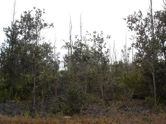 Very nice lot in the "green zone" lower subdivision, close to Manuka Park. Ohia trees & other native plants. A driveway & house pad were dozed several years ago, now grown over with tall grass. Lot is fairly level & there should be an ocean view at the back. low sspp electric on the street. Great buy Great lot!!