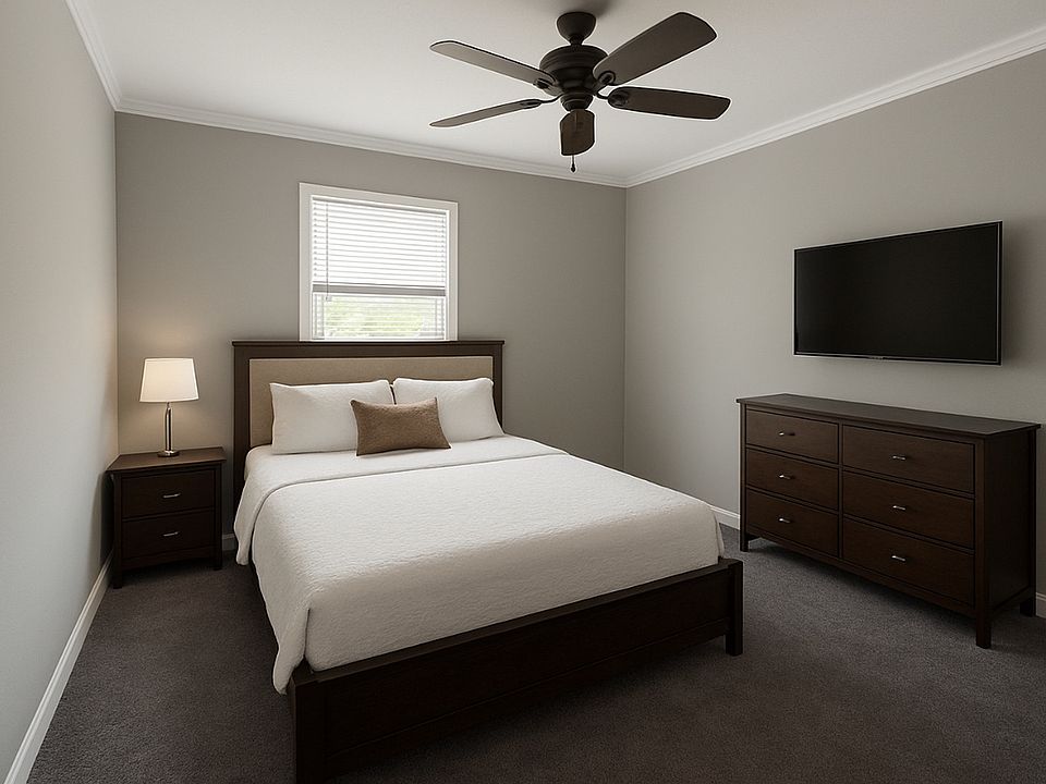 This apartment features a large primary bedroom and a second room that can serve as a bedroom, office, or guest room perfect for flexible living.