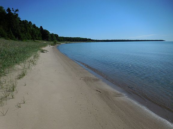250 acres of Mature Hardwood and Conifer forest over looking a wilderness bay on Lake Michigan. The frontage is spectacular sugary sand with dunes and forest of Maple, Spruce and Upland Cedar. Permitting for many uses should be simple due to the excellent topography. Quality building sites and many other development options are possible. Southerly exposure for all day sun, remote yet easy access. Power not to property but is available not far away. Adjacent to a large and remote tract of state land on the east end. Value priced and a rare find!