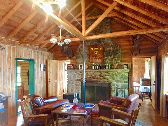 Located in Western Iron County Michigan, you will find this historic off-grid log lodge on Mallard Lake and the North Branch of the Paint River. This classic, restored lodge was once owned by the Hanna Mining Company for their executives. This lodge features 4 bedrooms, a large kitchen, real stone wood fireplace, pine floors, cathedral ceilings with log accents, and a lakeside sunroom. There is a detached 2 car log-sided garage with attached custom dog kennels, and a 10x24 bath/shower building which includes a traditional wood sauna. Off grid features include a new propane generator system in separate building, propane lights, propane heat, propane refrigerators, drilled well, and septic. This pristine parcel is 60 well-wooded acres boasting 3,612 feet of shoreline on Mallard Lake and 1,301 feet of frontage on the North Branch of the Paint River. Adjoining USFS lands, this property offers numerous recreational possibilities, from fishing to waterfowl hunting, a true private escape!