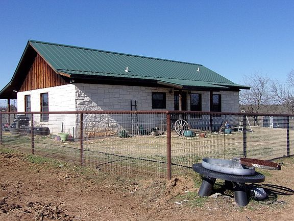 Lovely rock ranch style 2/2 home on hill - charming as it can be, all open kitchen, bar, dining, living area. Split bedrooms with private closets, one bath in hall. Laundry room & pantry/storage area. Excellent fencing on 10 acres, plus pipe yard fence & sprinkler system. RV hook up-septic, water, electric, nice metal barn & 4 stalls, all ready for your animals/horses & pets. Property has hill country views!! Other tax #24835