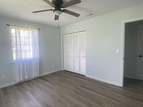 Bright and airy. Very clean. Newer kitchen cabinets, counter top, sink, flooring, shower, baseboards, roof and central A/C. Huge 2 car garage. Property is 1/3 acre with a large backyard. Close proximity to schools and medical offices. Washer/dryer hook-up. Well water. Lawn maintenance is included in rent. Asking $1,600/month. First, last, security, background check and proof of income required to move in.