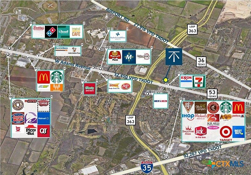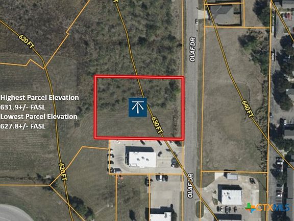This commercial property consists of approximately 1.125 acres (±49,190 SF) with about 185 feet of road frontage on Olaf Drive in Temple, Texas. The site offers direct access to Olaf Drive and excellent connectivity to Loop 363, I-35, Highway 36, and Highway 53, placing it in a high-growth area. Zoned Commercial (C2), the property features a gently sloping grade ranging from ±631.9 FASL to ±627.8 FASL, with water and sewer service provided by the City of Temple and electric service by Oncor. According to TxDOT, nearby traffic counts on W. Adams Avenue average 32,450 vehicles per day (VPD). The parcel lies within Flood Zone X, indicating an area of minimal flood hazard. Detention information has not been provided by the seller. The property is offered at $380,000, and inquiries can be directed to the Temple Planning Office at 254-654-2819.