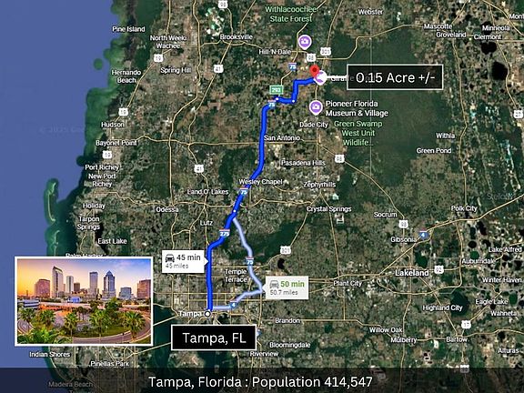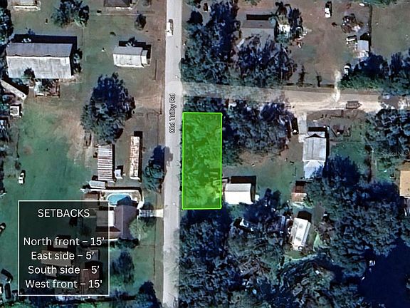 Build Your Perfect Florida Retreat on This Affordable Dade City Corner Lot! This 6,500 sq. ft. parcel located on Old Trilby Road in Dade City, Florida (Parcel ID: 27-23-21-0060-00C00-0070) is zoned R-3 Residential and ready for your new home. According to Pasco County Land Development Code, the smallest permitted residence must be at least 12’ x 40’, making it ideal for a cozy single-family home, cottage, or modular build. The property is a legal, nonconforming parcel that was grandfathered in prior to the adoption of current zoning standards, so you can build with confidence knowing it meets county requirements. Zoning allows one single-family home, and as a corner parcel, the lot offers two front yards and two side yards with setbacks of 15’ on the north and west sides and 5’ on the east and south sides. Enjoy the quiet charm of Old Trilby Road, just minutes from downtown Dade City, shopping, dining, and convenient access to US-301 and I-75 for travel to Tampa, Wesley Chapel, and Brooksville. A qualified buyer can purchase this land with a 20% down payment.