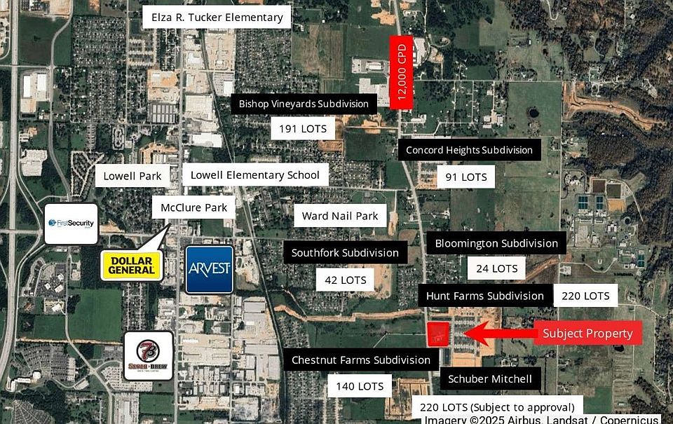 This 5.06-acre property is a prime spot for future growth. Located right next to the city park and within 1 mile of 900+ planned & established homes, it’s an ideal site for retail, mixed-use, or service businesses. Zoned C-2 Commercial, this property is ready for development in one of the fastest-growing areas of Northwest Arkansas.