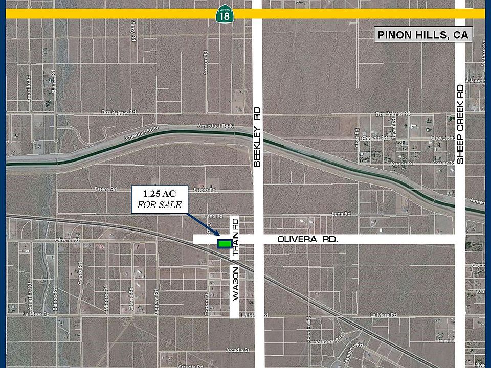 1.25 Acres just off Beekley Rd in Phelan CA. This property sits south of the Aqueduct and north of the railroad and 1.1 miles west of Sheep Creek Rd. Phelan is located in the Inland Empire of San Bernardino, more specifically the High Desert area. Phelan sits 30 miles wast of Palmdale and 18 miles west of Victorville. Owner is offering financing, your down payment is your qualification to purchase. The Seller is asking 30% down ($5,985) a loan of $13,965 amortized at 7.5% interest for 10 years. Monthly payments to be $165.77.