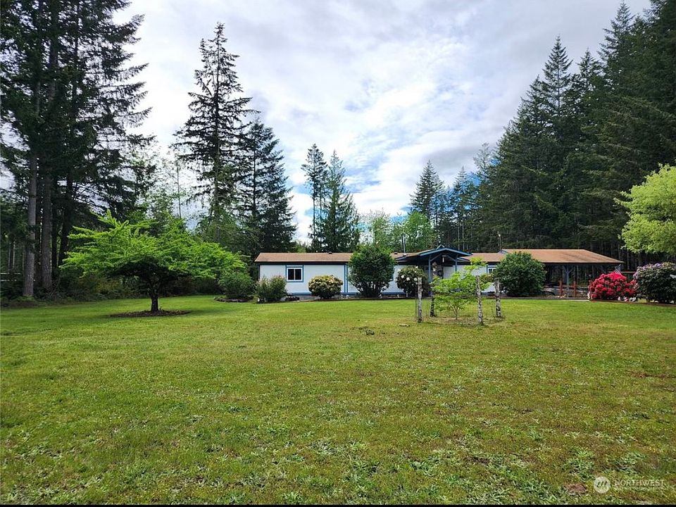 Light and bright, freshly painted and new laminate wood flooring in Steamboat Island community. Wrapping up the last finishing touches, will be available to rent November 1st. New washer and dryer in mudroom, 3 bedrooms, great room, office and eat in kitchen including dishwasher, newly opened view through kitchen to living room. Quiet 5 acres with 3 sheltered parking spots under a carport. Large covered back porch for watching the sunset and listening to the birds.