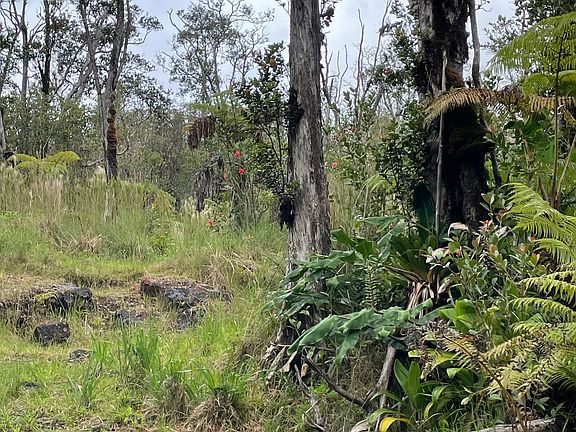 This lush lot in Fern Forest Estate is just a short drive off of paved Kahauale'a and Kaleiponi. The natural landscaped entrance is welcoming and the driveway has been created and is secured with a gate and lock.