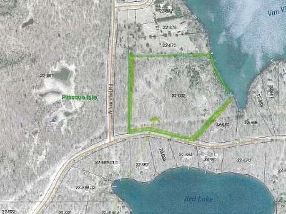 Van Vliet Lake Lot is a very nice privacy parcel. It is located on a quiet bay that is part of the Presque Isle Chain of Lakes. There is 380' of frontage with 11.1 acres of nicely wooded land that guarantees privacy for your Northwood's retreat. This property is conveniently located on a town road and adjoins to Presque Isle Township land to the West. There is a nice elevated building site with a wonderful level area at lakeside. Large parcels like this are unusual and uncommon! So don't wait.