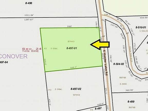 Beautiful building site on high ground with only about an acre of low land. Power is at the road. About 12 minutes from Eagle River. Vilas County land only 50 yards away. The adjacent 5 acre lot is also available for $34,900. #7763