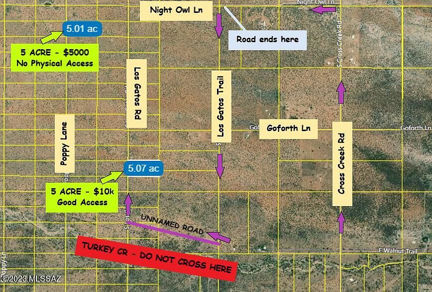 Rural 5 ACRES, Zoned RU4. All level and usable. Most of the access roads are good but It's just slow going. It's a beautiful area! No physical access and buyer must improve the last 1/4 mile on Night Owl. A few off the Grid neighbors, living the simple life. Very affordable at only $5000. Solar only area as power is a distance. Follow the driving directions as GPS doesn't work in the area. DO NOT try to cross Turkey Creek on Los Gatos Road. Crossing at Cross Creek Rd is much better! The same seller has a nearby 5 acres parcel with access. It's only $10,000 for 5 acres. Buy both parcels for only $14,500. This is a great opportunity for those looking for affordable land with mountain views. Seller will not finance.