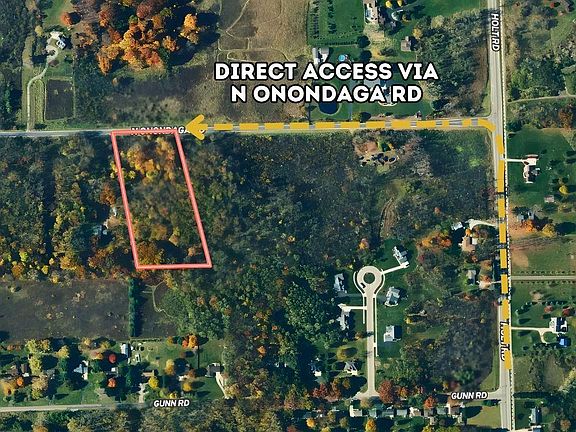 5.02-acre residential parcel located on Onondaga Rd in Holt, Ingham County, within Delhi Township city limits. Zoned R1C Residential, this fully buildable lot offers flat, usable terrain and paved road frontage, making it ideal for immediate or future development. A portion of the property includes natural wetlands toward the rear, providing privacy and green space while preserving full buildability. Approved structures include single-family homes, modular, manufactured homes, and barndominiums, offering flexibility for a wide range of residential plans. Utilities are easily accessible, and there is no HOA. Located just minutes from downtown Holt and Lansing for schools, shopping, and services, and approximately 1.5 hours from Detroit, the property offers rural space with excellent access to city amenities. Whether you're looking to build a home, develop multiple units, or secure land in a growing Mid-Michigan area, this property offers lasting value and usability in a convenient, well-connected location
