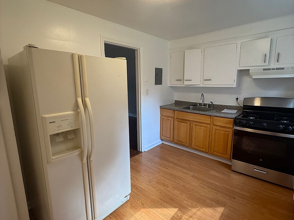 Very nice first floor apartment! This apartment features heat hot water included, freshly painted, hardwood floors throughout, eat in kitchen with refrigerator, tiled bathroom, laundry room and one off street parking!