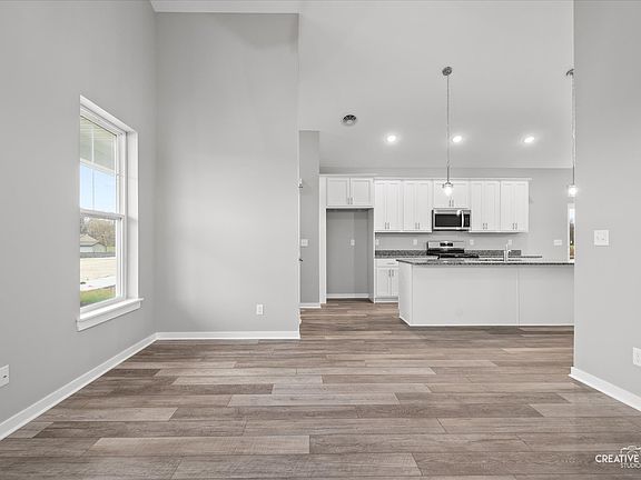 Open floor planLp smart sidingStainless steel appliancesWhite shaker cabinetsSatin nickel fixtures
