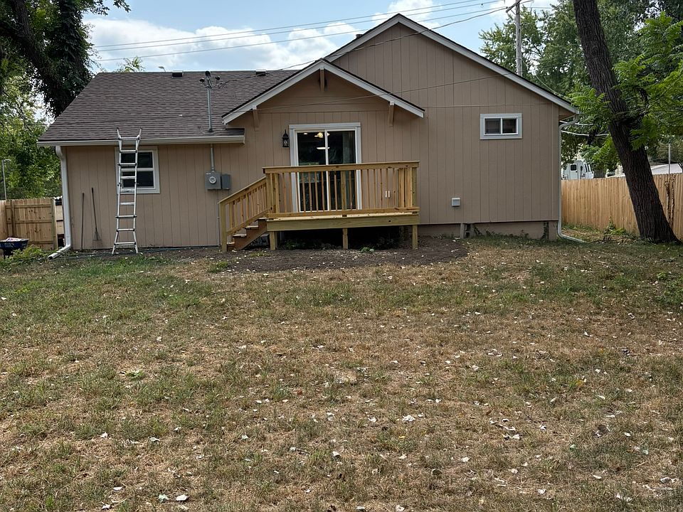This is a house is Overland Park. It has three bedrooms, two full baths, one car garage, and a large fenced backyard. It was just completely renovated, everything is new!