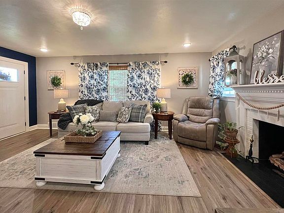 Charm meets convenience in this delightful single-family abode! Step into a world of warmth and comfort as you enter the open-concept living space, perfect for creating lasting memories with loved ones. This home is on the east side of town, close to parks, shopping, grocery stores, beautiful downtown space, and restaurants. This townhouse boasts its newly renovated chef's kitchen, a haven for gourmet cooking, with storage space for all kitchen accessories. The beautiful white on top and maple bottom custom kitchen cabinets make cooking easy with rollouts in large cabinets and soft close doors and drawers. The under-cabinet lighting is a bonus for extra lighting. The lighting acts to showcase the beautiful quartz countertops. The kitchen was updated with new electrical wiring and reciprocals; new can lighting was installed in the kitchen and living area. New stainless-steel high-end appliances and a built-in microwave. Its modern look includes a beautiful wooden vent over the cooktop. The under-cabinet tile adorns most of the kitchen, bringing warmth to the space with the lovely brick look. A spacious laundry room is separate from the kitchen, with its own space and cabinets for storage. This spacious two-bedroom, one-bath home is perfect for new homeowners or those downsizing. This home has modern light brown vinyl hardwood flooring, matching perfectly with all decorative idea styling. Enjoy the warmth of winter with this beautiful fireplace that has been brought back to life with a gorgeous gas log installation. All new window replacements and entry and back doors were installed, all less than five years old. The outside of the home has a new modern style with beautiful dark shades and white accents; the siding is the durable SmartSiding engineered panel siding. The front yard is ideal for those interested in a lovely yard requiring little maintenance. A newly poured concrete pad was just added to the front area for convenience and to ensure you always have a place to park your car. There is a single-car detached garage in the back of the house with added electrical reciprocals and new overhead lighting. The roof and gutters were replaced only five years ago. The friendly neighbors make this a place that feels like home.