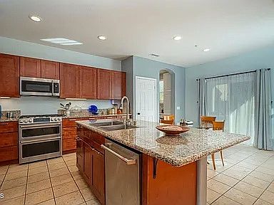 First-Time Rental! Discover this spacious and beautifully updated 4-bedroom, 4-bath home designed for comfort, style, and efficiency. A highly desirable downstairs bedroom and full bath provide ideal flexibility for guests or multigenerational living, while the luxurious upstairs primary suite impresses with a remodeled bathroom featuring an oversized soaking tub, separate walk-in shower with instant hot water, dual sinks, and a generous walk-in closet. The gourmet kitchen is a standout, showcasing cabinetry with soft-close drawers, high-end GE Cafe Professional appliances, an eat-in island with granite countertops, stainless steel sink and grates, pull-out pantry shelving, built-in trash storage, and a dedicated wine storage area perfect for entertaining. Hardwood and tile flooring flows throughout the entire home, with no carpet anywhere. Extra Bonus room with TV included! Enjoy modern, energy-efficient living with paid-off solar panels and battery system, multiple ceiling fans, and water-saving artificial turf in both the front and backyard helping keep utility costs low. Additional highlights include a convenient indoor laundry room, optional leased security system with video doorbell and cameras, a large covered patio ideal for year-round enjoyment, and a spacious Tuff Shed for extra storage. Ideally located near shopping, great schools, and with easy access to the 101 freeway, this exceptional home offers the perfect blend of luxury, practicality, and location. A must-see ! Updated/remodeled 4 bedroom/4 bath home. Shopping, parks and schools, close by within minutes. Six months or longer term (negotiable).