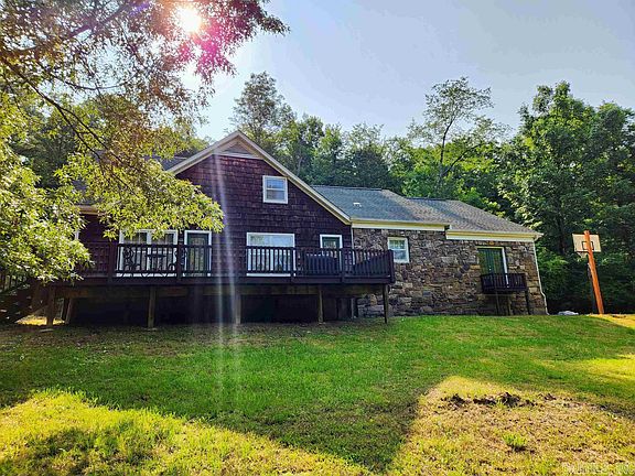 Amazing Chalet-style home with rustic Arkansas Charm! Beautiful home with lots of style and space! Big rooms, many with original wood floors, big windows to bring in the outdoors, two story, with two big bedrooms upstairs that could be divided into four, upstairs bath, big master bedroom suite, and another bedroom downstairs. Large front deck looks out onto your own 7.6 acres m/l. Beautiful grassy lawn, big trees, two small ponds, this is your Arkansas Home!