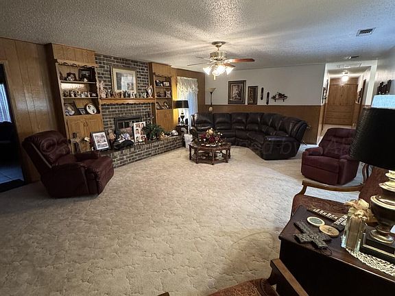 One-owner home offering exceptional space and comfort! This property features 3 bedrooms and 3 bathrooms, along with two inviting living areas and a dedicated storm shelter room for added peace of mind. Inside, you'll find a beautiful kitchen with granite countertops and a matching granite backsplash. This well-maintained home truly has everything you need-plenty of space, great amenities, including a large lot and a large storage building in the backyard.