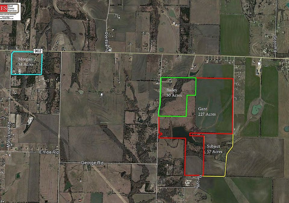 Gant land is outlined in red. There is a total of 227.475 acres. The 58.77 acres which front Red Road with pasture land along the north area of the site and a heavily treed area to the south west portion of the site. The southeast portion is a lake. The lake also spills over into the adjacent portion of the site or the 168.705 acre parcel. This parcel is primarily cultivated land to the northeast with scattered trees to the rear of the site. The most southerly piece of the this acreage has the lake, heavily treed areas south of the lake and a cultivated pasture which fronts Stratton Rd on a corner. The land at this time is farmland, a cattle lease along with a hunting & fishing lease. Would make a great Horse Ranch. Link to YouTube video: https://youtu.be/-bzNEg6wpUw Will post a few more pictures as they get edited.