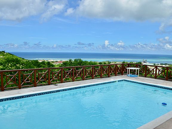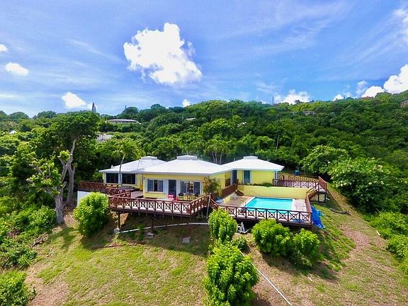 3/2, pod-style home with a pool in coveted Beeston Hill sits on a private, crest lot overlooking Christiansted harbor with views to Buck Island, St. Thomas, St. John & the BVI. A quaint courtyard anchors the 3 living structures. The first is large primary suite w/ sitting parlor/office, walk-in closet & en suite w/ a water closet. In the center lies the bright & breezy kitchen/living room pod with high ceilings and lots of light. The 3rd pod houses 2 additional bedrooms sharing a bathroom and steps from the enormous pool overlooking the stellar views! Take in the beauty of the Caribbean from the expansive decks surrounding the home. Accordian shutters, separate laundry room & shed that can be converted into an office/art studio. Lovingly maintained by attentive owners.