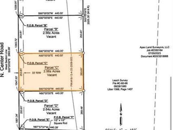 NEW BEGINNING ON NORTH CENTER! This is your opportunity to build the home of your dreams on this newly split 2.56 acre parcel of land in the heart of Kochville Township with city water at the road. This rural location offers a country feel but only minutes from the MBS International Airport as well as several restaurants and retail shops. This newly split PARCEL C will be recorded at closing. Also, the seller has obtained a transferable septic permit with acceptable requirements for an elevated septic field. The natural flow of water from the adjacent farm field drains toward the property. The survey for the lot lines legal description will be recorded at closing. Request a copy of the survey for details.