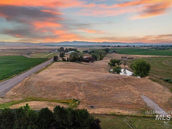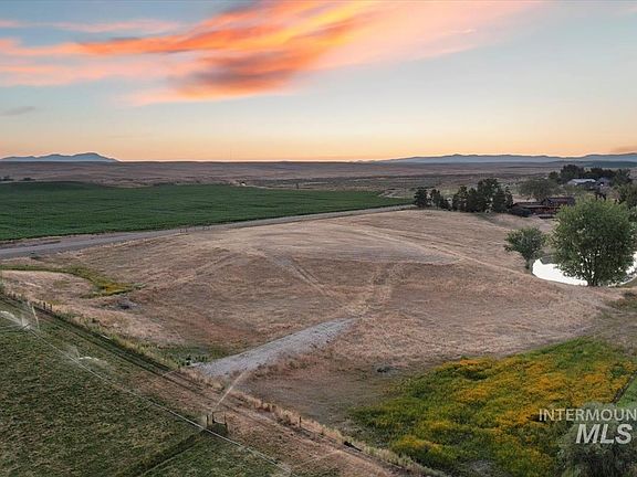Fantastic VIEW building lot, with no HOA or CC&RS! Located near the end of Goodson Road (dead end), overlooking fields, mountain ranges and a private pond, it doesn't get more peaceful! After an evening watching glorious sunsets, leave your windows open to fall asleep to peace, quiet, and a cool country breeze. The lot offers both level and rolling terrain, providing many options for building, including a walk out basement. 1 acre of irrigation rights through Black Canyon Irrigation allows you to establish a pasture, huge garden, fruit trees, etc. Bring your critters! Already fenced on three sides. Two dams have been built for the opportunity to develop cascading ponds! This beautiful property is less than a mile to Bureau of Land Management public ground for horseback riding, hiking, 4 wheeling, etc. Peaceful country living, only 13 minutes to I-84, 23 min to Costco!