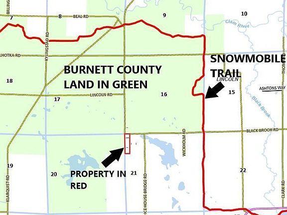 Nice Open Parcel that is mostly open . If you don't want to monkey around clearing trees this might be for you! Zoned A2. Paved Roads all the way to the property! Adjoins thousands of acres of Burnett county forest land to the west & across the street!