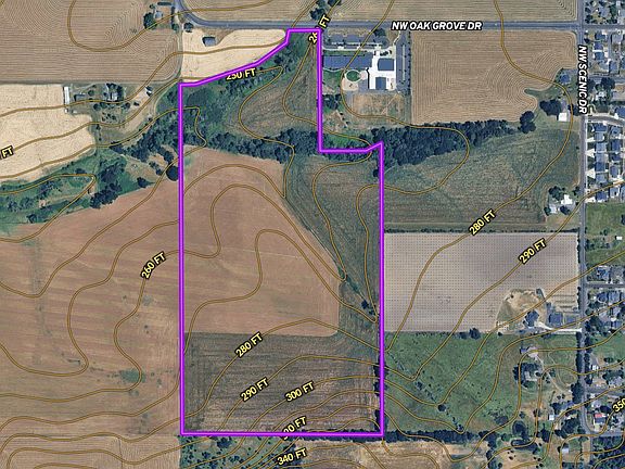 This remarkable 68-acre buildable farm, located next to Oak Grove Elementary School, sits squarely in the path of progress for a long-term investor or end user. Currently planted in turnips, the property features approximately 85% high quality Class II soils, ideal for year-around livestock grazing, horses, cattle, hazelnuts, Christmas trees, and supports multiple grass seed varieties. A homesite is permitted under Measure 49, with several building locations offering privacy and expansive, scenic views.