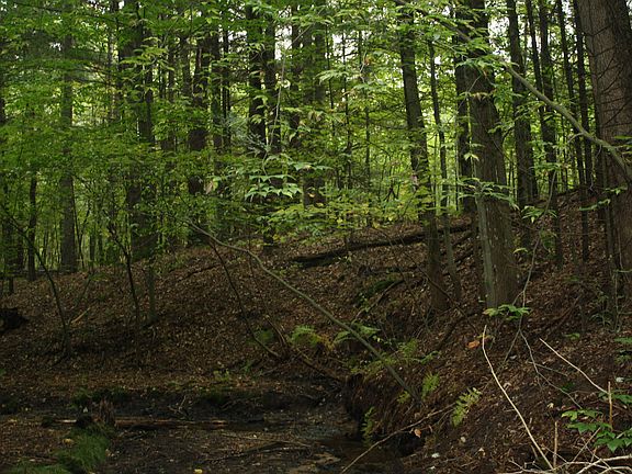 Almost 5 wooded acres with a small ravine and creek running through propery. Lots of wildlife and deer trails run through. Mushrooms and seller says morels in the spring. Propety had a clearing at one time, lots of small and mature trees. Buyer to verify all information.