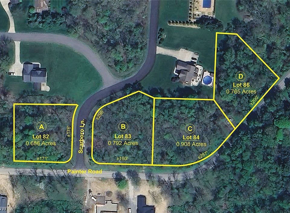 Four Wooded Lots with Utilities - Salem City, Columbiana Co. - Great Location - Beautiful Homes in The Area - Online Bidding Available. ABSOLUTE AUCTION, all sells to the highest bidder on location. ONLINE BIDDING BEGINS THURSDAY, JULY 18, 2024 – 12:00 PM and AUCTION LIVE ON-SITE BIDDING WILL BEGIN TUESDAY, JULY 23, 2024, 5:30 PM. Real Estate: Parcel A: Lot #82, .626 acre, all wooded. Corner lot. Frontage on Painter Rd. and Scarboro Ln. - Parcel B: Lot #83, .792 acre, all wooded. Corner lot. Frontage on Painter Rd. and Scarboro Ln. - Parcel C: Lot 84, .908 acre, all wooded. Frontage on Painter Rd. - Parcel D: Lot #86, .765 acre, all wooded. Frontage on Painter Rd. - Note: Walk the lots at your convenience. Great location with nice homes in the area. Lots will be sold by the lot, bidders choice. TERMS ON REAL ESTATE: 10% down auction day, balance due at closing. A 10% buyer’s premium will be added to the highest bid to establish the purchase price. Any desired inspections must be made prior to bidding. All information contained herein was derived from sources believed to be correct. Information is believed to be accurate but not guaranteed. Property is to be sold as Separate Parcels and not to be offered as an Entirety. See the other lots at MLS #5051360(A), 5051367(B), 5051372(C) and 5051373(D).