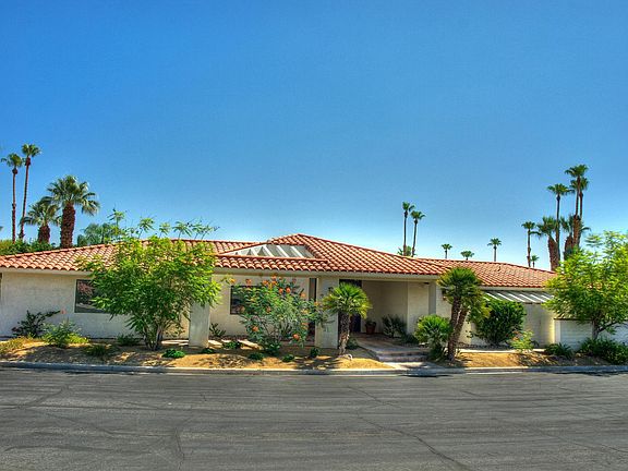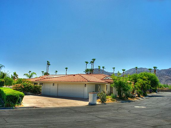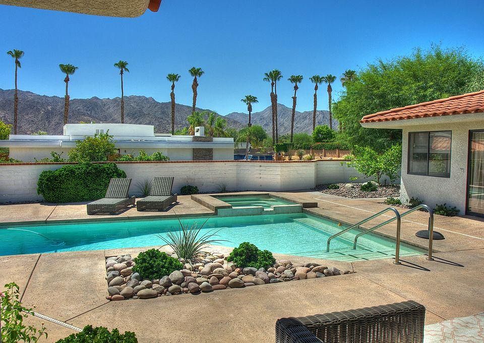 Two distinct large living areas - living room and family room. One with soaring 20 foot peaked ceilings. Both have sit-down tremendous views of the mountains and palm trees.