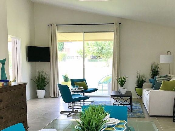 AVAILABLE for 3 months starting JANUARY 2026 thru MARCH 2026! This lovely one bedroom condo in Lux Ironwood Country Club has just been fully remodeled including new tile, fresh paint, new cabinets and counter tops, furniture and has been designed with a fresh mid century modern Palm Springs motif. This 1,025 square foot condo is just perfect for one or two people wanting all the conveniences found in a Country club Oasis, without the high cost that you would expect to pay when renting a larger unit. This bungalow is situated on the pool, with the 2 back patios facing south, so you get that glorious sun in the mornings that is so highly sought after. This lovely condo has a nice open floor plan and high vaulted ceilings, so it feels very spacious! It's turn key, so all you need to bring is your tooth brush! Ironwood is Lux and wonderful for those who enjoy outdoor living. The grounds are stunning, golf courses, palms, well kept landscapes with the glorious Santa Rosa mountains as a back drop! You are just 2 miles from The prestigious El Paseo with designer shops and some of the finest restaurants found in Southern California! We are Just down the road from the Tennis Gardens, Polo Grounds and the annual National Golf Tournament! Palm Desert is smack dab in the center of the Coachella Valley, just 20 minutes from Palm Springs and 20 minutes to Coachella, our desert is heavenly ~