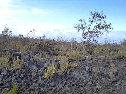 One of three lots that are fairly flat and slope down. Some smallish Ohia trees, and possibly an ocean view if you built up. Seller will sell 1 or all three separately, but would prefer to sell the two outer ones first and not the middle one. Buy one or all three to make a nice parcel